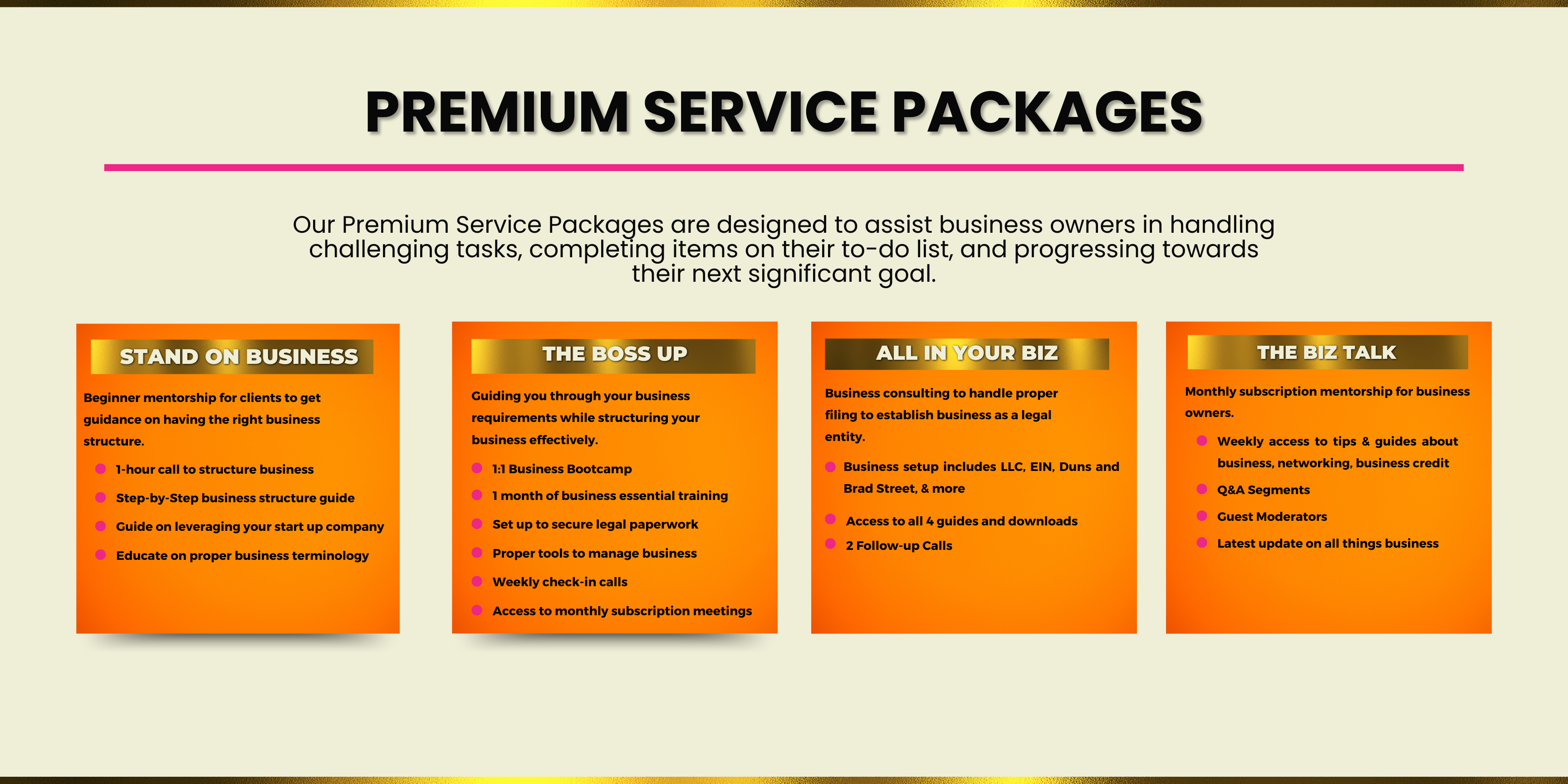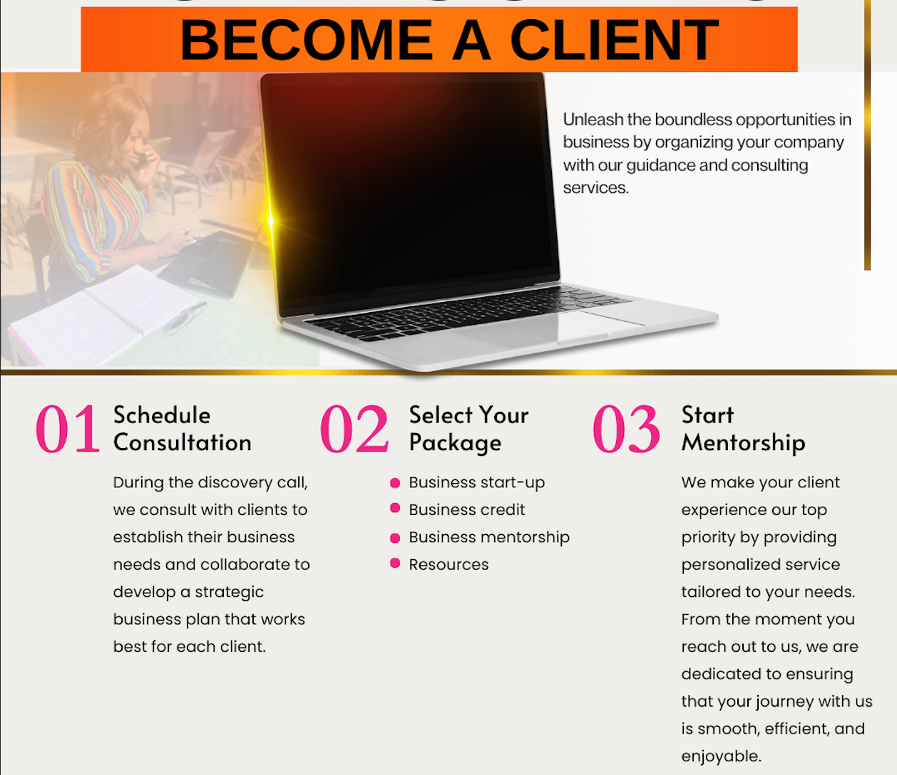 Are you a budding entrepreneur looking to kickstart your business journey? Look no further! Our Business Services have got you covered every step of the way. From helping you establish your startup to building your business credit, our business consultant is here to guide you towards success. Take advantage of our mentorship programs where you can learn from an experienced professional who have been in your shoes. Join our webinars and attend our events to network with like-minded individuals and gain valuable insights to propel your business forward. With our comprehensive range of services, you'll have the tools and support you need to turn your business dreams into a reality.
